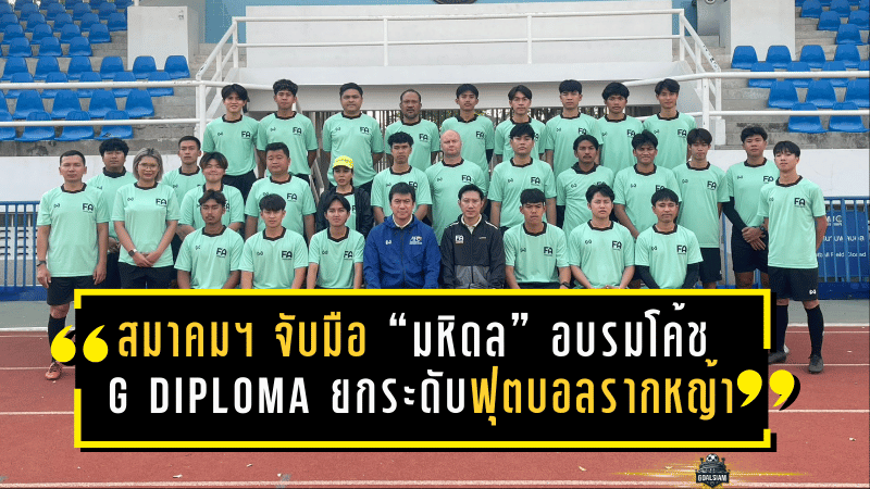 สมาคมกีฬาฟุตบอลฯ ร่วมกับมหาวิทยาลัยมหิดลจัดอบรมผู้ฝึกสอนหลักสูตร G Diploma (โค้ชฟุตบอลรากหญ้า) ระหว่างวันที่ 26-31 มกราคม 2569 ที่วิทยาลัยวิทยาศาสตร์และเทคโนโลยีการกีฬา มหิดล โดยมีคณบดีเป็นประธานเปิด พร้อมวิทยากรประจำหลักสูตรและผู้เข้าอบรม 30 คน เนื้อหาเน้นพื้นฐานฟุตบอลรากหญ้า ปรัชญาฟุตบอล กระบวนการสอน การฝึกที่เหมาะกับเด็ก 6-12 ปี การฝึกแบบเกมนำ ความปลอดภัย กฎกติกา และการนำไปใช้จริงกับกิจกรรม Grassroot Day พร้อมการเรียนทั้งทฤษฎีและปฏิบัติ ใช้อุปกรณ์และเทคโนโลยีทันสมัย ประเมินผลและให้ฟีดแบ็กเพื่อยกระดับโค้ชให้ใช้งานได้จริง
