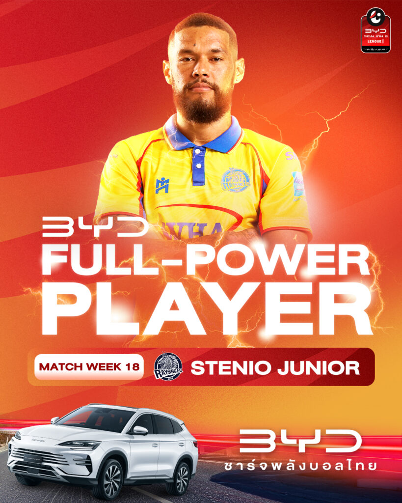ไทยลีกประกาศเลือก สเตนิโอ จูเนียร์ หัวหอกตัวเก่งของ ระยอง เอฟซี คว้ารางวัลผู้เล่นยอดเยี่ยม หรือ MVP ศึก บีวายดี ซีไลออน ซิกส์ ลีกหนึ่ง 2025/26 ประจำสัปดาห์ที่ 18 หลังโชว์ฟอร์มโหดด้วยการยิงคนเดียว 2 ประตู พา “ม้านิลมังกร” บุกย้ำแค้น เมืองทอง ยูไนเต็ด คาบ้านด้วยสกอร์ 3-1 เมื่อวันที่ 25 มกราคมที่ผ่านมา