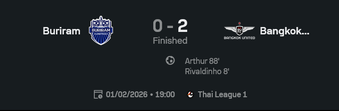 ศึก BYD SEALION 6 ลีกหนึ่ง 2025/26 ที่ช้าง อารีนา เกมนี้ใครเปิดสกอร์ได้ก่อนเหมือนยัดหลอดไฟใส่ปลั๊กทันที บรรยากาศเดือดตั้งแต่นาทีแรก และสุดท้ายกลายเป็นฝันร้ายของจ่าฝูง เมื่อ ทรู แบงค็อก ยูไนเต็ด บุกอัด บุรีรัมย์ ยูไนเต็ด 2-0 แบบที่แฟนเจ้าถิ่นเปิดแอปเช็ก ผลบอลสด แล้วต้องขยี้ตาซ้ำว่า “นี่มันเล่นในบ้านจริงเหรอวะเนี่ย”