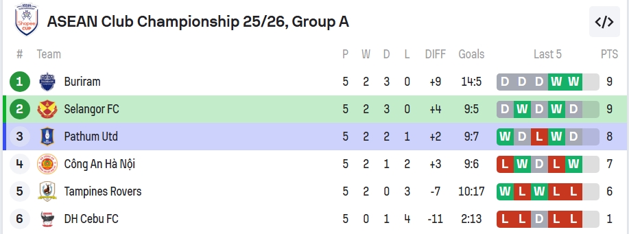 - Buriram: 9 แต้ม