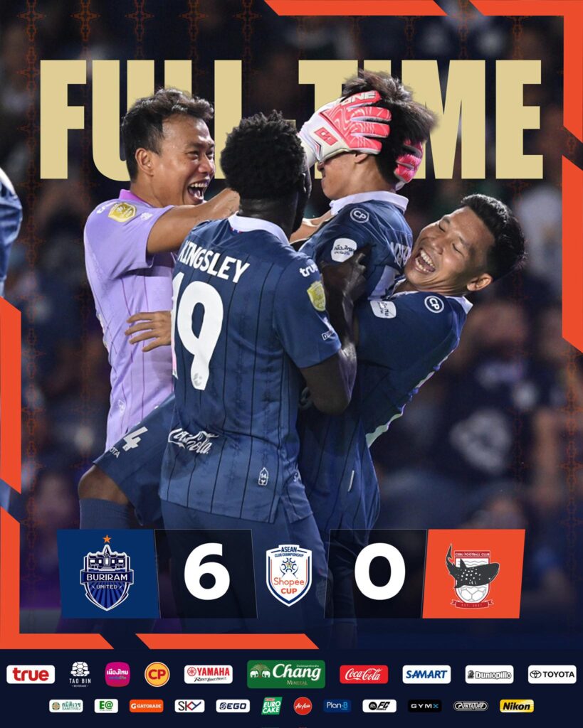 บุรีรัมย์ ยูไนเต็ด ทำงานแบบทีมที่ “รู้หน้าที่ตัวเอง” ตั้งแต่นาทีแรก ก่อนจะระเบิดฟอร์มไล่ถล่ม ไดนามิก เฮิร์บ เซบู เอฟซี 6-0 ในศึกสโมสรอาเซียน Shopee Cup 2025/26 รอบแบ่งกลุ่ม กลุ่มเอ นัดที่ 5 (แข่งวันที่ 4 กุมภาพันธ์ 2569) ผลนี้ไม่ใช่แค่สามแต้มธรรมดา แต่มันคือชัยชนะที่ล็อกสถานะ แชมป์กลุ่ม ตามเป้าหมายแบบชัดถ้อยชัดคำ และเป็นสัญญาณว่า “ปราสาทสายฟ้า” กำลังตั้งโหมดจริงจังเพื่อไปให้สุดทางในถ้วยนี้