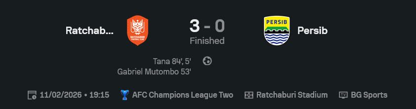 เกมรอบ 16 ทีม เอเอฟซี แชมเปี้ยนส์ ลีก ทู 2025/26 ที่ราชบุรี สเตเดียม GOALSIAM บอกเลยว่าคอบอลเปิดจอดูเหมือนเปิดศึกมวยกรง เจ้าถิ่นราชบุรี เอฟซี ไล่ขยี้ เปอร์ซิบ บันดุง แบบไม่เหลือคราบทีมขาประจำถ้วยเอเชีย สกอร์จบ 3-0 เหมือนกดสกอร์บอร์ดล็อกไว้ตั้งแต่เริ่มเกม แฟนเช็กสกอร์ผ่านสตรีม หรือดูจากหน้าเว็บ ผลบอลสด ก็รู้เลยว่าวันนี้มังกรไฟแห่งลุ่มน้ำแม่กลองของจริง
