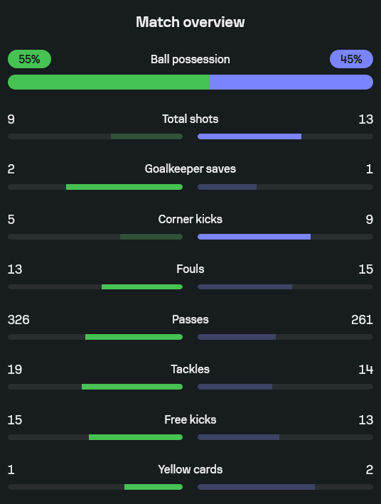 - ครองบอล บีจี ปทุม 55% ต่อ บุรีรัมย์ 45% แต่ทีมเยือนคมกว่า