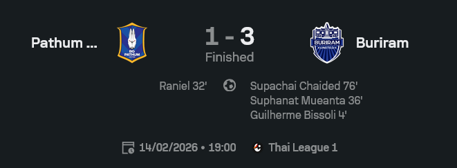 ⚽ สรุปแมตช์เดือด บีจี ปทุม ยูไนเต็ด 1-3 บุรีรัมย์ ยูไนเต็ด
