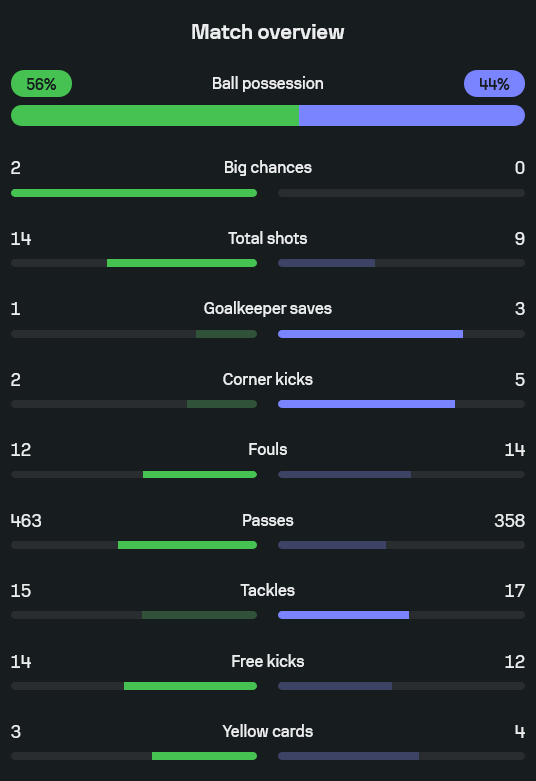 - จำนวนการผ่านบอล เมืองทอง 463 ครั้ง ลำพูน 358 ครั้ง เกมนี้กิเลนต่อบอลได้เนียนกว่า แต่ดันเก็บสามแต้มไม่ได้
