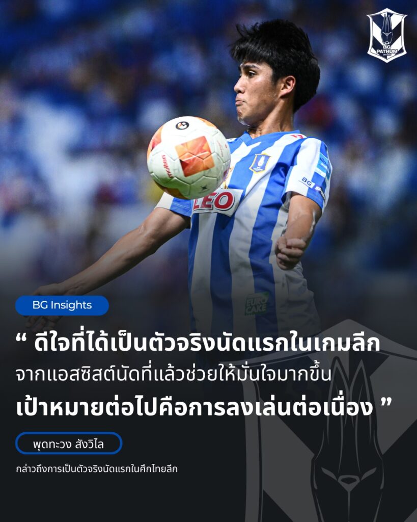“ส่วนแอสซิสต์แรกจากนัดที่แล้วก็ช่วยเพิ่มความมั่นใจให้มากกว่าเดิม เป้าหมายต่อไปก็อยากลงเล่นช่วยทีมให้ได้ต่อเนื่องครับ”