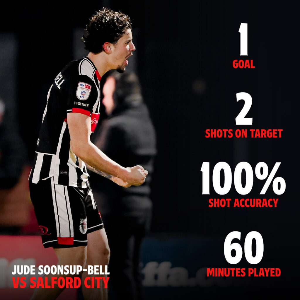 ค่ำคืนวันที่ 3 มีนาคมที่ผ่านมา แฟนบอลไทยได้เห็นภาพที่รอคอย เมื่อ จู๊ด ซุ่นทรัพย์ เบลล์ กองหน้าทีมชาติไทย ปลดล็อกทำ ประตูแรก ในสีเสื้อ กริมสบี้ ทาวน์ ได้สำเร็จ ในเกมเปิดบ้านชนะ ซอลฟอร์ด ซิตี้ 3-1 ศึก ลีก ทู อังกฤษ ฤดูกาล 2025/26 (นัดตกค้าง)