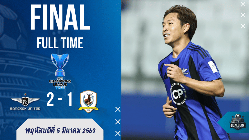 - ⏱ FT ทดเวลา 8 นาที จบเกม แบงค็อกชนะ 2-1