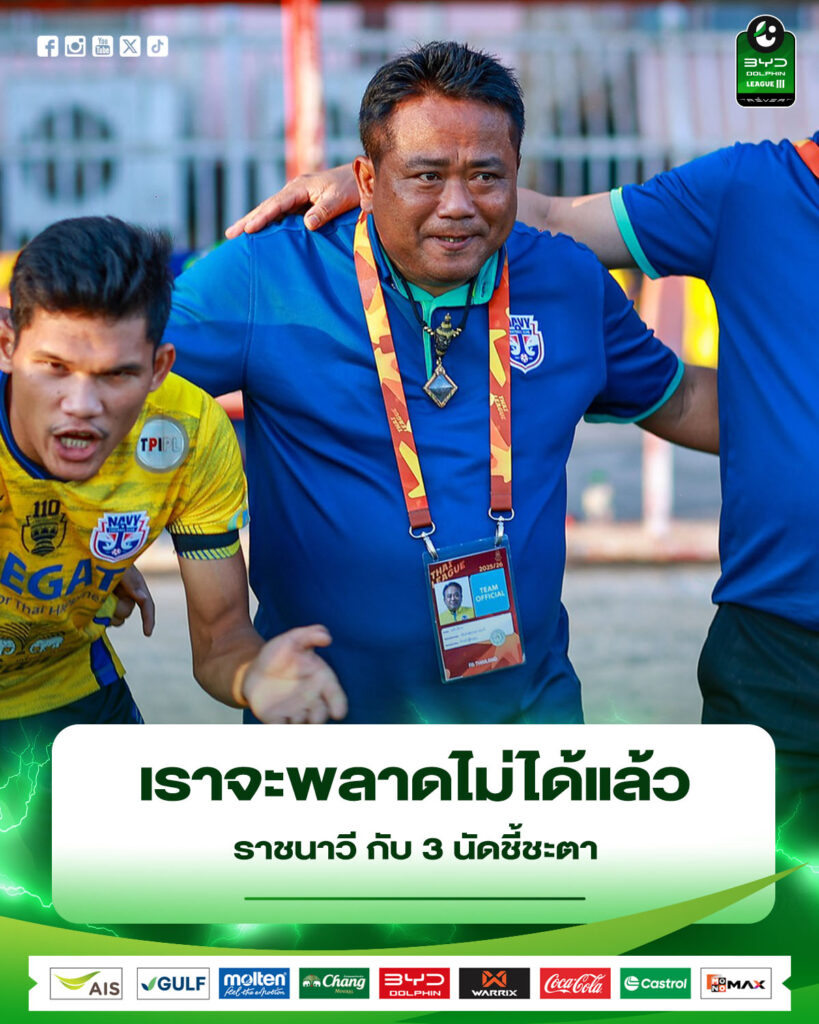คำพูดนี้สะท้อนชัดเจนว่า ราชนาวีไม่ได้อยู่ในจุดที่เลือกได้อีกแล้ว แต่กำลังอยู่ในจุดที่ต้อง “ชนะสถานเดียว” ให้ได้มากที่สุด เพราะแม้ทีมคู่แข่งยังมีสิทธิ์สะดุด แต่ถ้าทีมของตัวเองพลาดก่อน ทุกอย่างก็อาจปิดฉากลงทันทีแบบไม่ต้องลุ้นอะไรต่อ