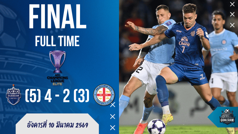 - ⏱ จบต่อเวลา บุรีรัมย์ ยูไนเต็ด 0-0 เมลเบิร์น ซิตี้ ต้องตัดสินกันด้วยการดวลจุดโทษ