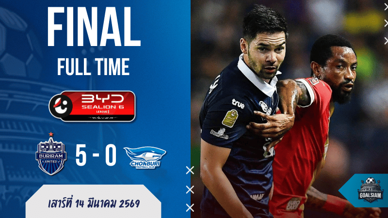 ศึก BYD SEALION 6 ลีกหนึ่ง คู่นี้จบแบบแทบไม่ต้องลุ้นนาน เมื่อ บุรีรัมย์ ยูไนเต็ด เปิดบ้านอัด ชลบุรี เอฟซี 5-0 ในเกมที่จุดเปลี่ยนมาเร็วเกินคาด เพราะทีมเยือนเหลือ 10 คนตั้งแต่นาที 5 หลัง เคเว่น อินาซิโอ โดนใบแดง แล้วหลังจากนั้นรูปเกมก็เทไปทางเจ้าถิ่นแทบทั้งหมด ครองบอล 69 เปอร์เซ็นต์ ยิง 24 ครั้ง และเดินหน้ากดแบบไม่เปิดโอกาสให้ชลบุรีได้ตั้งหลัก
