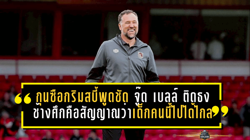 ชื่อของ จู๊ด ซุ่นทรัพย์-เบลล์ หอกหนุ่มของ กริมสบี้ ทาวน์ ถูกเรียกติด ทีมชาติไทย ชุดใหญ่ ก่อนโปรแกรมสำคัญปลายเดือนนี้ที่ต้องดวลเติร์กเมนิสถานในเกมตัดสินเส้นทาง คัดเอเชียน คัพ และทันทีที่ข่าวออกมา เสียงจากฝั่งสโมสรในอังกฤษก็ชัดเจน—นี่ไม่ใช่แค่ “ข่าวดี” แต่มันคือการยืนยันว่าผลงานและการเติบโตของนักเตะกำลังถูกเห็นจริง