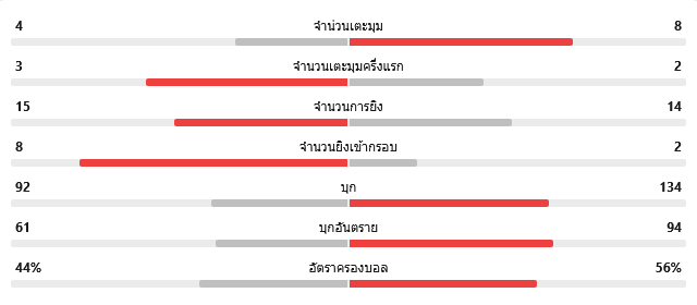 - บางกอกครองบอล 56 เปอร์เซ็นต์ แต่เปลี่ยนเป็นความอันตรายแทบไม่ได้
