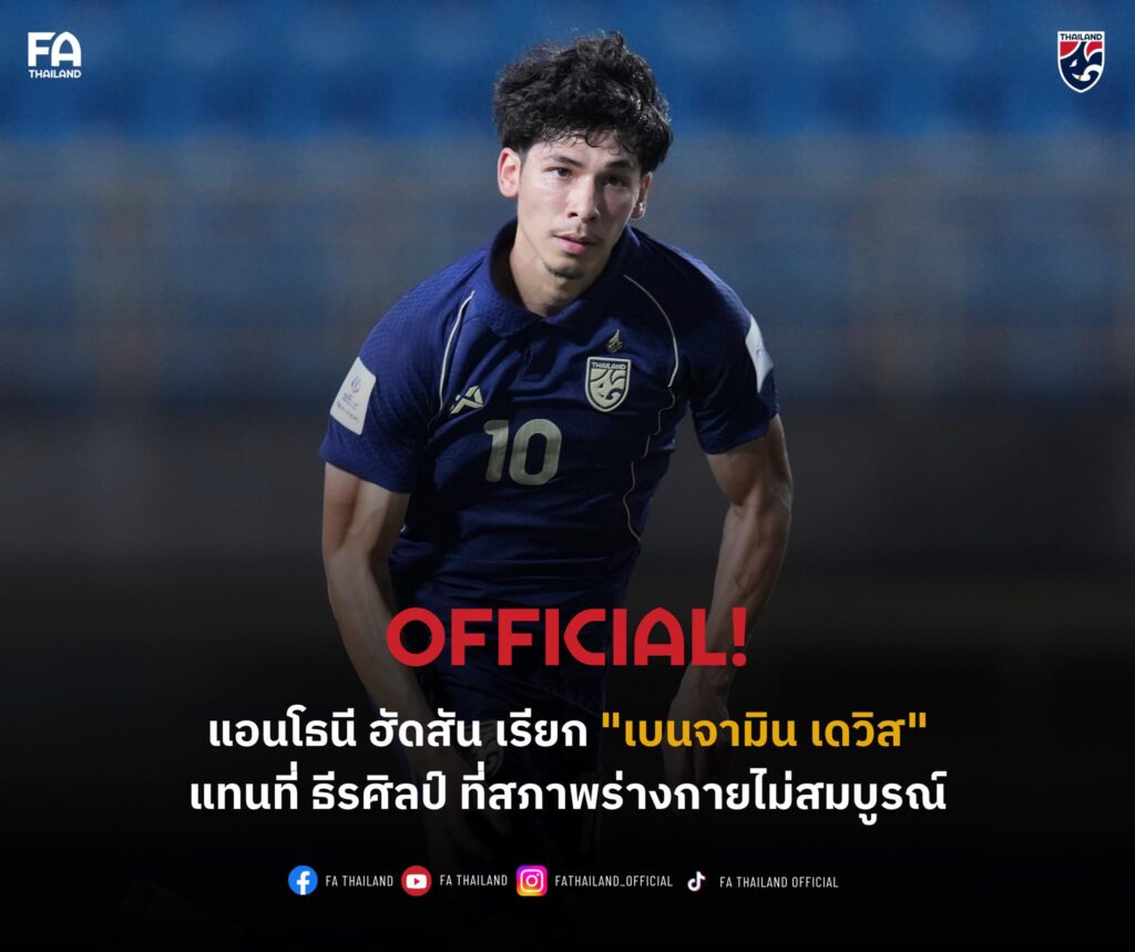 แม้การเสียธีรศิลป์จะเป็นเรื่องน่าปวดหัว แต่การดึง เบน เดวิส กลับมา ก็แสดงให้เห็นว่าทีมชาติไทยยังพร้อมเดินหน้าต่อแบบไม่เสียจังหวะ ตอนนี้เหลือแค่ว่าแนวรุกชุดใหม่จะตอบโจทย์ในเกมสำคัญได้มากแค่ไหน