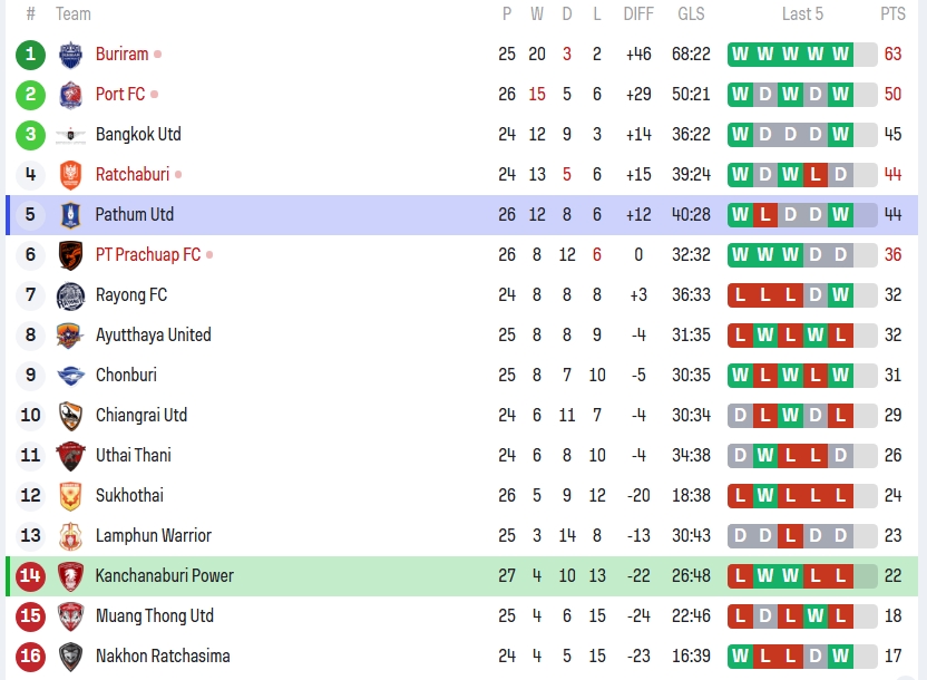 หลังจบเกมนี้ บีจี ปทุม ยูไนเต็ด ขยับขึ้นมาอยู่อันดับ 5 มี 44 คะแนนจาก 26 นัด ยังพอมีลุ้นเบียดท็อป 4 ได้ในช่วงโค้งสุดท้าย ส่วนสถานการณ์ของ พลังกาญจน์ เอฟซี น่าเป็นห่วงสุด ๆ ร่วงลงมาอยู่อันดับ 14 (โซนตกชั้น) มีเพียง 22 คะแนน แถมเตะมากกว่าชาวบ้านเขาไปแล้ว (27 นัด) ถ้ายังเล่นกันทรงนี้ต่อไป เตรียมตัวไปทัวร์ลีกล่างได้เลยครับแฟน ๆ