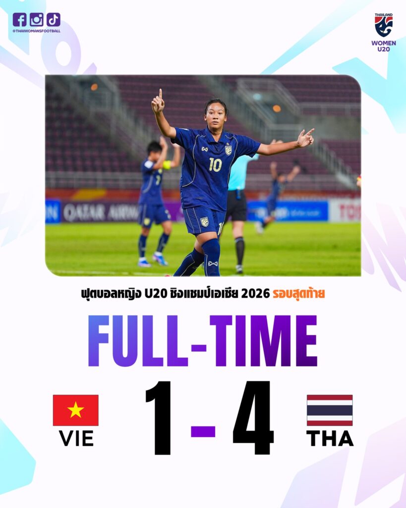 ฟุตบอลหญิงทีมชาติไทย U20 เดินหน้าสร้างแรงกระเพื่อมในศึกชิงแชมป์เอเชีย 2026 ได้อย่างดุดัน หลังไล่ถล่ม เวียดนาม 4-1 ในรอบแบ่งกลุ่ม สาย A นัดที่ 2 เมื่อวันที่ 4 เมษายน 2569 ที่สนามธรรมศาสตร์ สเตเดียม ส่งให้ทีมทะยานผ่านเข้าสู่รอบ 8 ทีมสุดท้ายได้เรียบร้อยจากผลงาน 2 นัด 6 แต้มเต็ม และยังเหลือคิวสำคัญในการดวลกับ จีน เพื่อตัดสินตำแหน่งแชมป์กลุ่มในนัดสุดท้าย.