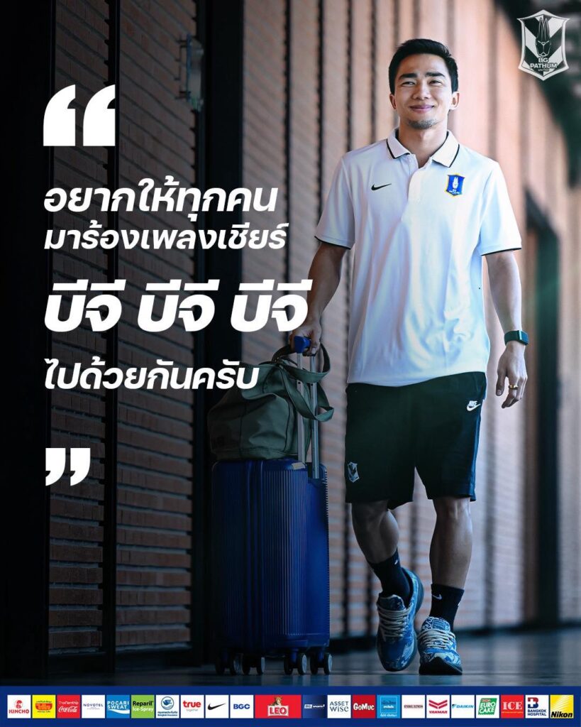 ก่อนเกมสำคัญที่ไม่มีพื้นที่ให้พลาด กัปตันเจเลือกพูดแบบชัดเจนและตรงไปตรงมา เพื่อปลุกความฮึกเหิมให้แฟนบอลบีจีรวมพลังกันอีกครั้ง โดยเจ้าตัวกล่าวว่า “เชิญชวนแฟนบอล บีจี ปทุม ยูไนเต็ด อยากให้ไปเชียร์ที่ ชลบุรี” ซึ่งสะท้อนชัดว่าทีมต้องการแรงหนุนจากเสียงเชียร์ในแมตช์ตัดสินที่เดิมพันสูงมากเกมนี้