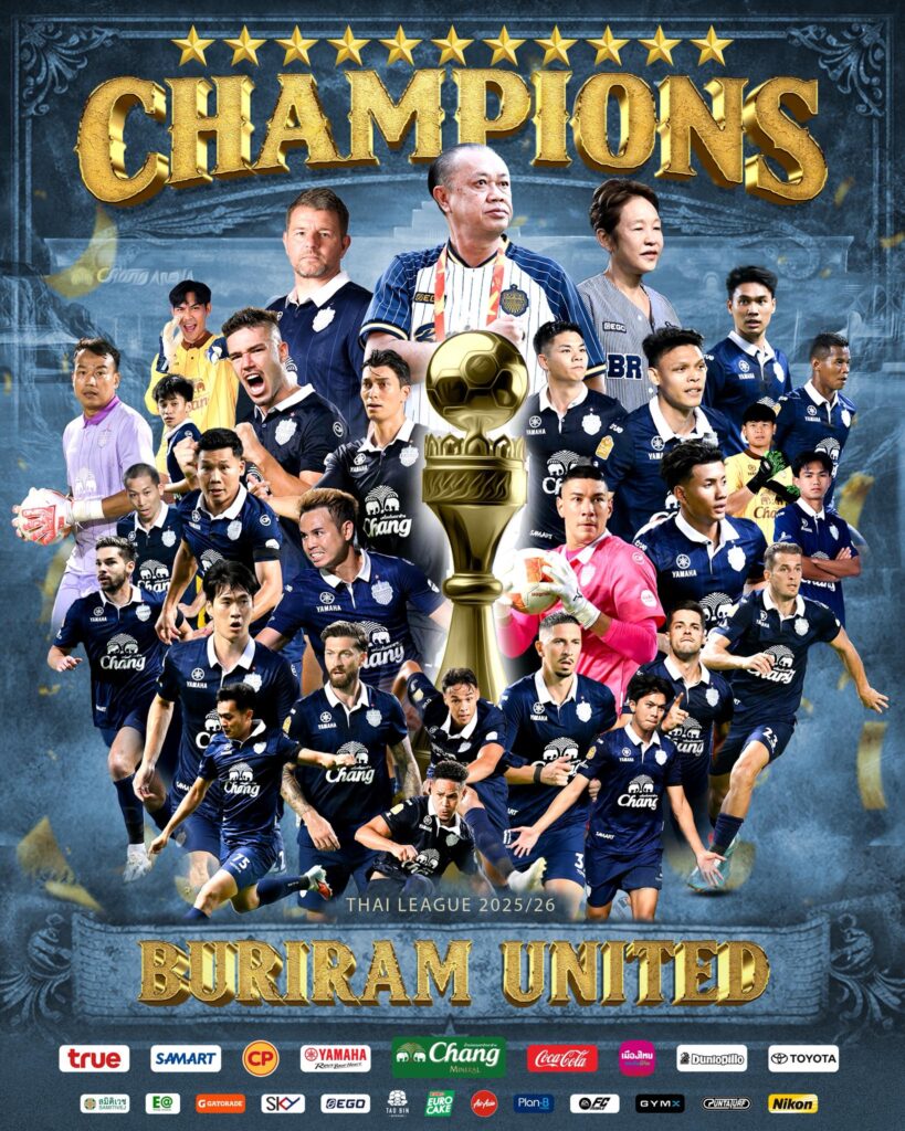 ฤดูกาลนี้บุรีรัมย์ไม่ได้แค่ชนะ แต่ชนะด้วยมาตรฐานของทีมลุ้นแชมป์ตัวจริง พวกเขาเก็บแต้มได้สม่ำเสมอ กดดันคู่แข่งได้ตลอดทาง และเมื่อถึงจังหวะที่คู่แข่งพลาด ก็ไม่ปล่อยให้โอกาสหลุดมือ การคว้าแชมป์ครั้งนี้จึงไม่ใช่เรื่องฟลุก ไม่ใช่ของขวัญจากใคร แต่เป็นรางวัลของทีมที่นิ่งกว่า แน่นกว่า และเฉียบคมกว่าทุกทีมในลีก