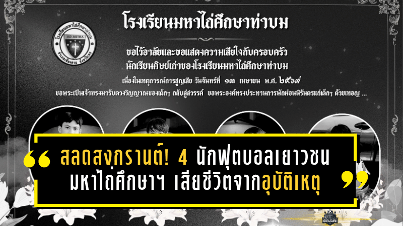 รายชื่อ 4 นักฟุตบอลเยาวชนผู้จากไป