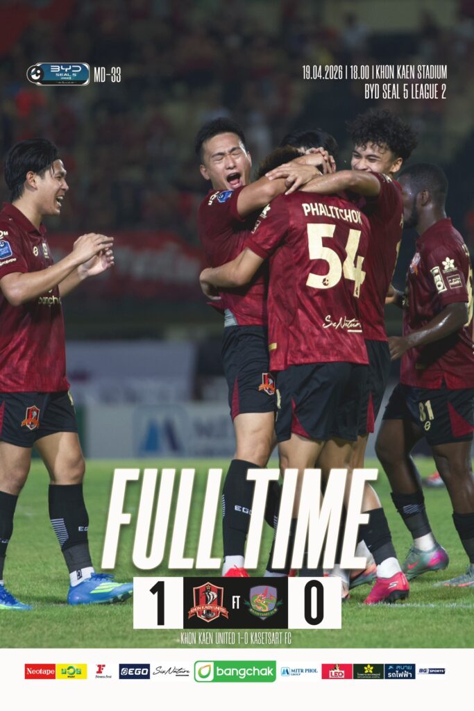 ขอนแก่น ยูไนเต็ด ยังไม่ปล่อยมือจากความหวังง่ายๆ หลังเปิดบ้านเฉือนชนะ เกษตรศาสตร์ เอฟซี 1-0 ในศึกไทยลีก 2 นัดที่ 33 ของฤดูกาล 2025/26 ส่งผลให้ทีมเก็บเพิ่มเป็น 44 คะแนนจาก 33 นัด และยังตามหลังโซนเพลย์ออฟเพียง 2 แต้มเท่านั้น ทำให้ทุกอย่างยังต้องไปตัดสินกันต่อในเกมสุดท้ายของซีซั่น