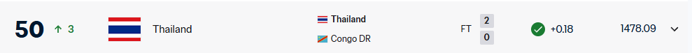 จากเดิมที่ทีมมีคะแนนสะสม 1,476.89 คะแนน ล่าสุดเพิ่มขึ้นอีก 1.2 คะแนน เป็น 1,478.09 คะแนน ส่งผลให้ขยับขึ้น 2 อันดับ มารั้งที่ 50 ของโลก และอยู่ในอันดับ 9 ของทวีปเอเชีย นี่คือการขยับที่มีความหมาย เพราะทุกก้าวของอันดับโลกย่อมส่งผลต่อภาพรวมความน่าเชื่อถือของทีมในเวทีนานาชาติ รวมถึงความเชื่อมั่นก่อนศึกใหญ่ที่กำลังรออยู่ข้างหน้า