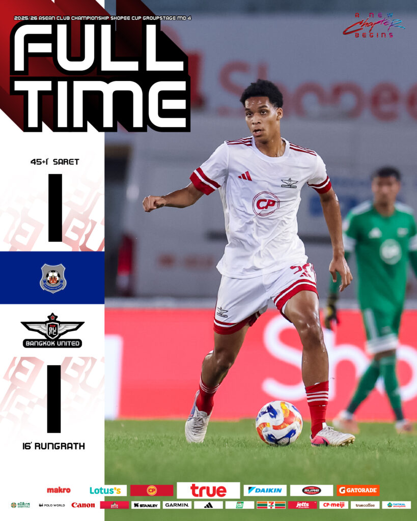 เกมนี้จบลงด้วยผลเสมอ 1-1 ระหว่าง ทรู แบงค็อก ยูไนเต็ด กับ สวาย เรียง เอฟซี ในศึก SHOPEE CUP 2025/26 ซึ่งเป็นนัดส่งท้ายของทั้งสองทีม หลังจากหมดสิทธิ์ลุ้นเข้ารอบไปก่อนหน้านี้แล้ว