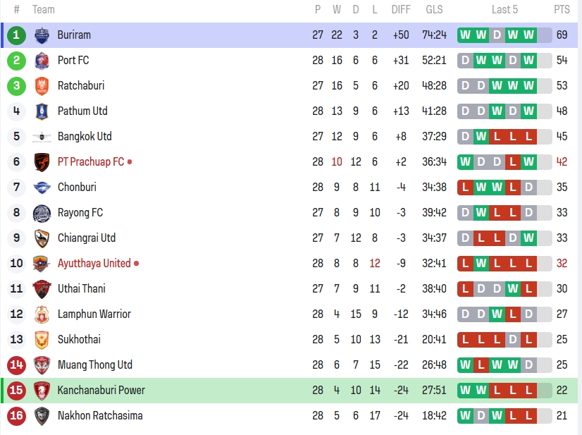 ส่วน พลังกาญจน์ เอฟซี สถานการณ์ยังหนัก อยู่ที่ 15 แข่ง 28 นัด มี 22 คะแนน ผลต่างประตู -24 เกมนี้นำก่อนแต่เก็บแต้มไม่ได้ มันเจ็บกว่าการโดนนำตั้งแต่ต้น เพราะนี่คือเกมที่มีโอกาสได้ลุ้น แต่สุดท้ายโดนคุณภาพของบุรีรัมย์บดละเอียดครึ่งหลัง