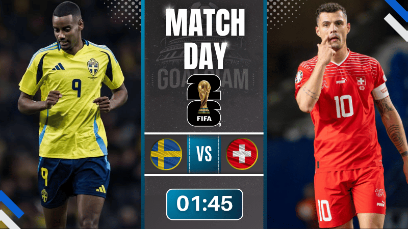 - แท็กติกปะทะความฮึกเหิม: สวีเดนต้องเริ่มเกมให้คมและเร็ว ส่วนสวิตเซอร์แลนด์ถนัดคอนโทรลบอล-เปลี่ยนสปีดเข้าทำ รอเก็บจังหวะทอง