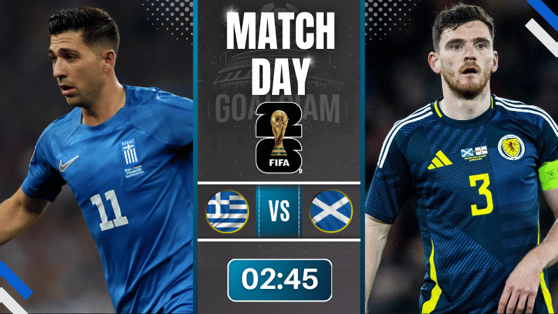 ก่อนเกมบรรยากาศในกลุ่มอึดอัดขั้นสุด ทั้งสองทีมต่างต้องการแต้มเพื่อรักษาโอกาสลุ้นตั๋วไป ฟุตบอลโลก 2026 และคืนนี้แฟนบอลห้ามพลาดโอกาสทอง ดูบอลสดฟรี คู่เดือดระดับชาติ กรีซ ปะทะ สกอตแลนด์ เกมที่ทั้งแรงปะทะ แท็กติก และความกดดันอัดแน่นเต็ม 90 นาที!