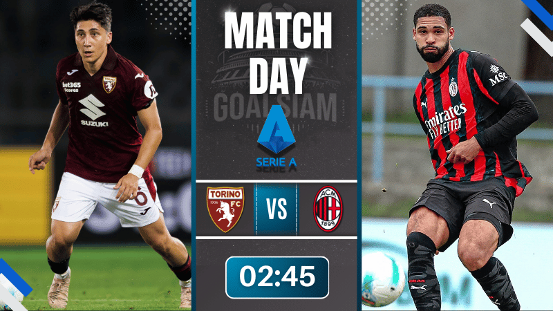 โตริโน่ พบ เอซี มิลาน ศึกเซเรียอาดึกเดือด เช็กฟอร์มก่อนระเบิดจอ ดูบอลสดฟรี แบบจัดเต็มกับ GOALSIAM