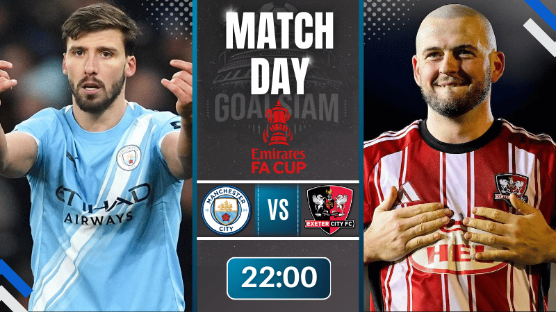 แฟนบอลเอฟเอ คัพ อังกฤษ เตรียมระเบิดจอ! คืนวันเสาร์นี้ “เรือใบสีฟ้า” แมนเชสเตอร์ ซิตี้ เปิดเอติฮัดรับการมาเยือนของม้ามืดจากลีกล่างอย่าง เอ็กเซเตอร์ ซิตี้ ศึกบอลถ้วยที่อะไรก็เกิดขึ้นได้ และนี่คือโอกาสทองของแฟนบอลที่อยากลุ้นยักษ์ใหญ่ชนทีมรองแบบสดๆ เพราะคืนนี้คุณสามารถกดดูศึกนี้แบบ ดูบอลสดฟรี ผ่านสตรีมสุดคมชัดจาก GOALSIAM เห็นทุกช็อตลุ้นทุกจังหวะกันแบบติดขอบหน้าจอ