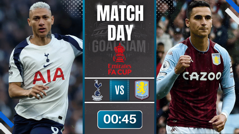 ศึกเอฟเอ คัพ อังกฤษ เกมนี้ไม่มีคำว่าลองทีม มีแต่คำว่าต้องชนะ สเปอร์สในบ้านคือทีมที่พร้อมบุกใส่แบบไม่เกรงใจใคร ขณะที่แอสตัน วิลล่ามาในมาดผู้ท้าชิง บุกลอนดอนด้วยความมั่นใจเต็มถัง ใครพลาดจังหวะเดียวอาจต้องเก็บกระเป๋ากลับบ้านทันที แฟนบอลตัวจริงต้องเข้ามาดูให้รู้เรื่องกับตาตัวเอง