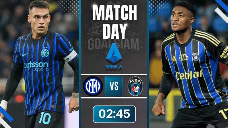 ⚽️ รายละเอียดการแข่งขัน อินเตอร์ มิลาน vs ปิซ่า พร้อมลิงก์ดูบอลสดฟรี
