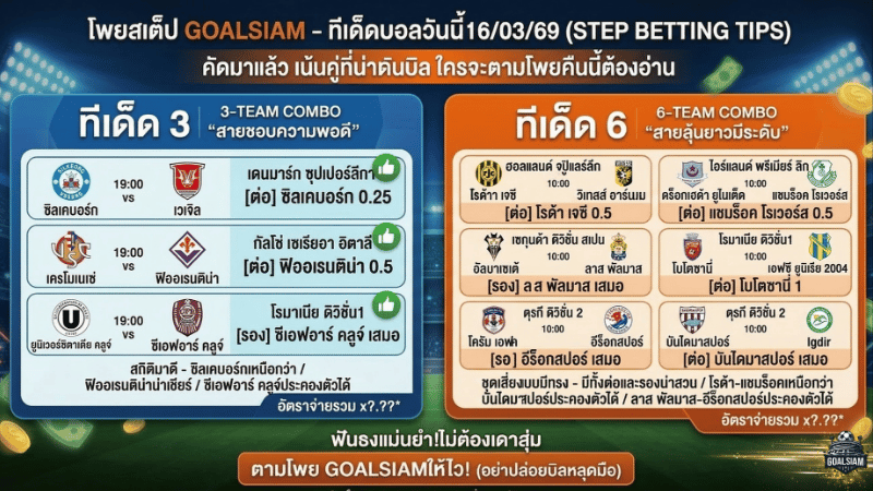 ทีเด็ดบอลสเต็ป 3 ประจำวันที่ 16/03/2026