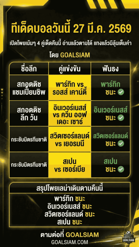 ใครกำลังหา ทีเด็ดบอลคืนนี้ 4 คู่ แบบอ่านง่าย ใช้งานได้จริง หรืออยากได้ ทีเด็ดบอลเต็ง ที่มีเหตุผลรองรับชัดๆ ติดตาม วิเคราะห์บอล GOALSIAM ไว้ให้ดี เพราะเราคัดคู่ที่น่าเล่นที่สุดมาให้แบบตรงประเด็น อ่านจบแล้วเอาไปตัดสินใจต่อได้ทันที