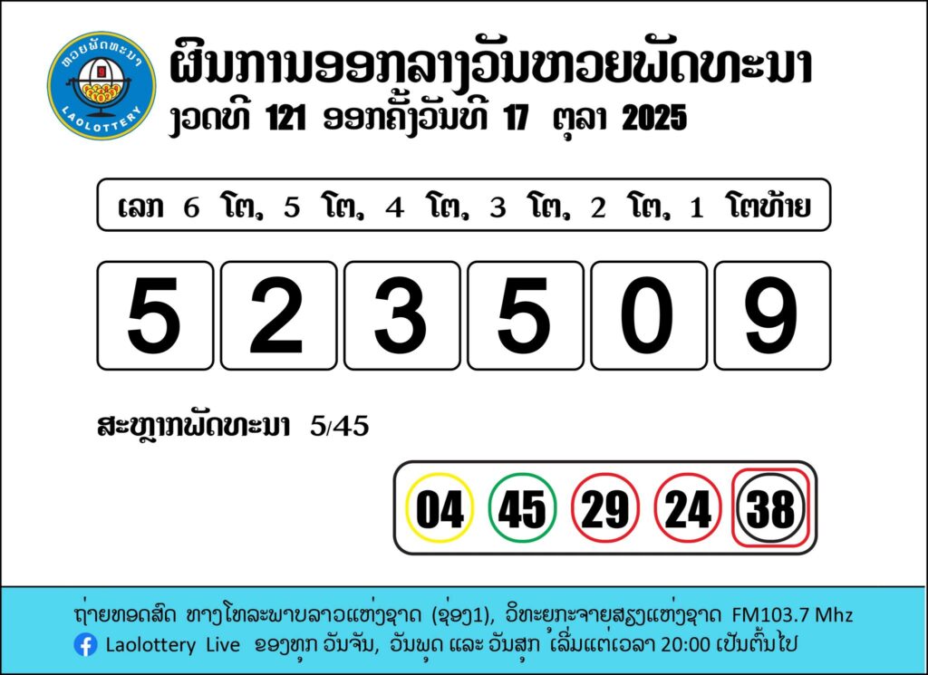 📌 ผลรางวัลหวยลาววันนี้ 17 ตุลาคม 2568 (ลาวพัฒนา)