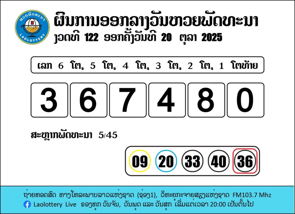 📌 ผลรางวัลหวยลาววันนี้ 20 ตุลาคม 2568 (ลาวพัฒนา)