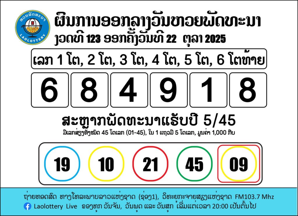 📌 ผลรางวัลหวยลาววันนี้ 22 ตุลาคม 2568 (ลาวพัฒนา)