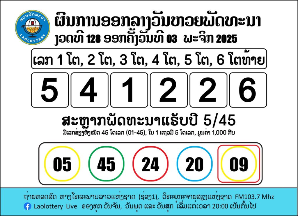 📌 ผลรางวัลหวยลาววันนี้ 3 พฤศจิกายน 2568 (ลาวพัฒนา)