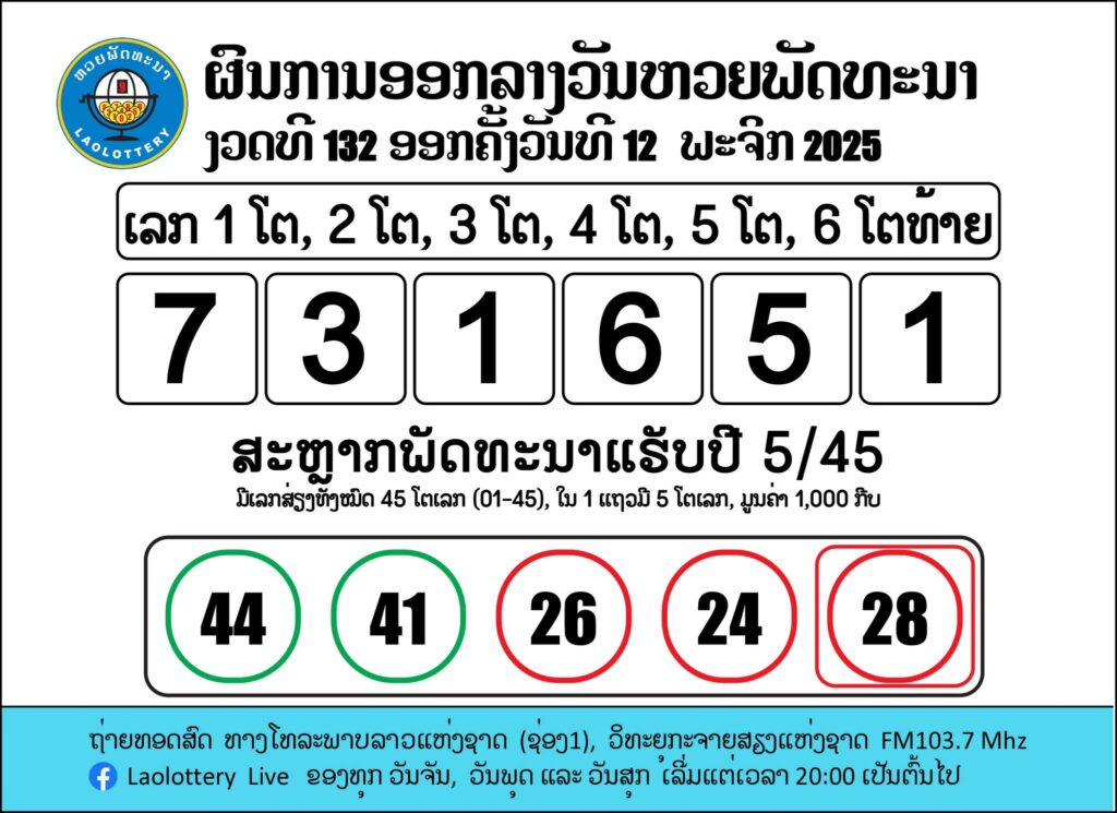 📌 ผลรางวัลหวยลาววันนี้ 12 พฤศจิกายน 2568 (ลาวพัฒนา)