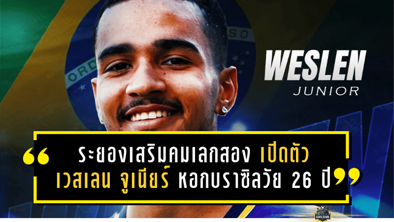 “ม้านิลมังกร” ระยอง เอฟซี ทีมในศึก บีวายดี ซีไลออน ซิกส์ ลีกหนึ่ง ประกาศบรรลุข้อตกลงคว้าตัว เวสเลน จูเนียร์ กองหน้าชาวบราซิลวัย 26 ปี เข้ามาเสริมเกมรุกอย่างเป็นทางการ เพื่อช่วยทีมล่าตาข่ายในช่วงเลกสอง ฤดูกาล 2025/26