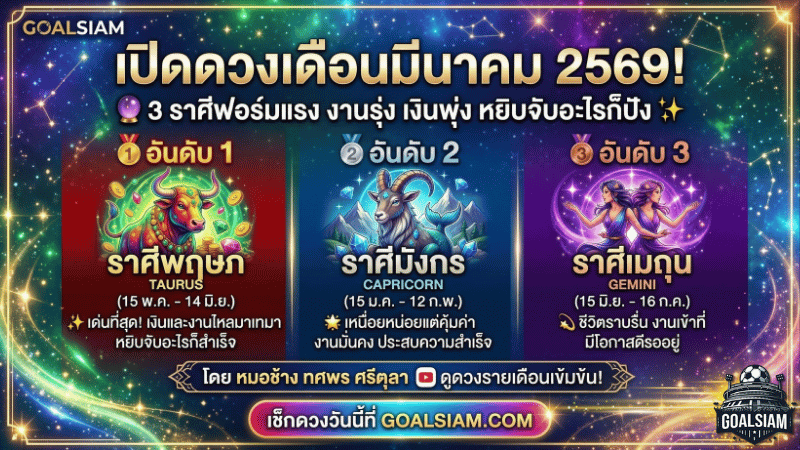 ✨ 3 อันดับราศีดวงดีเดือนมีนาคม 2569
