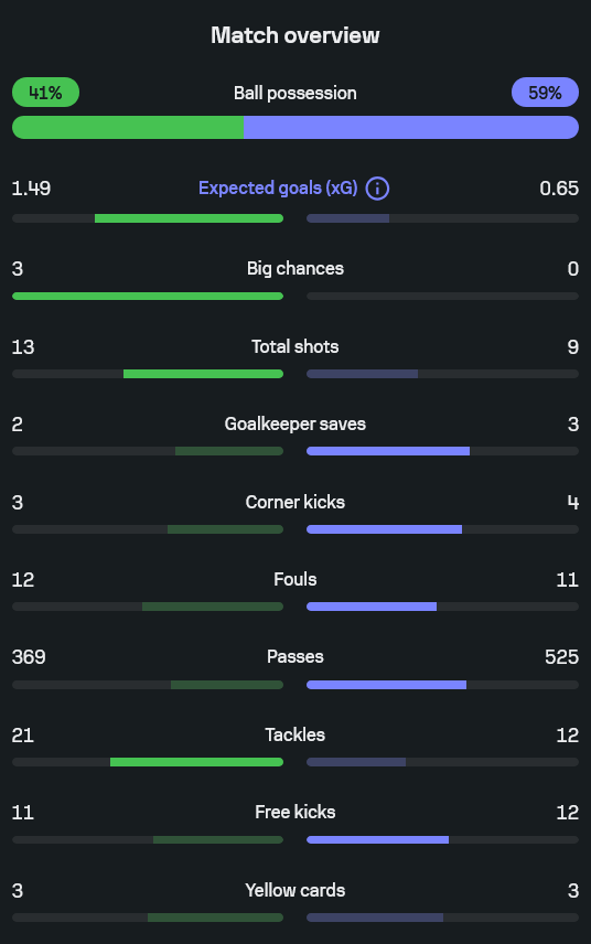 - ค่าความคาดหวังประตู (xG): 1.49 – 0.65