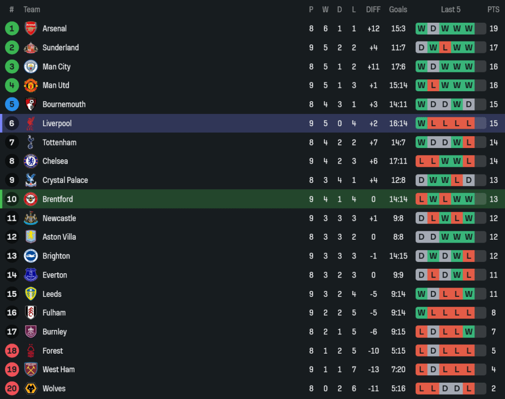 - Big chances: เบรนท์ฟอร์ด 6 | ลิเวอร์พูล 5
