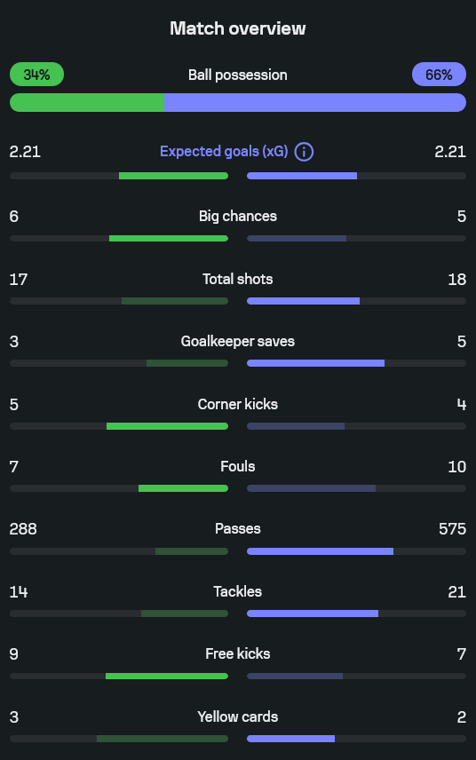 - xG เท่ากันที่ 2.21