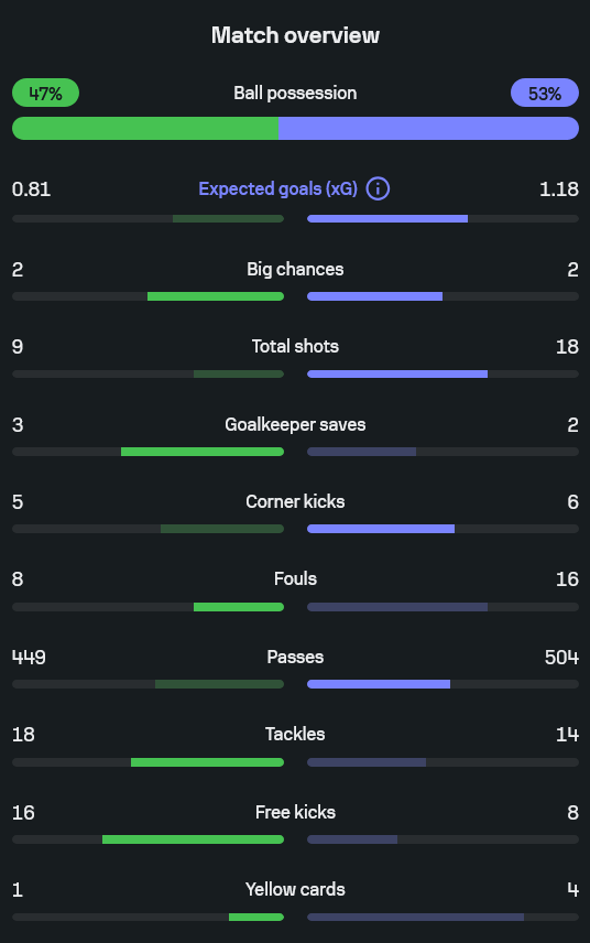 - xG (Expected Goals): วิลล่า 0.81 | แมนฯ ซิตี้ 1.18