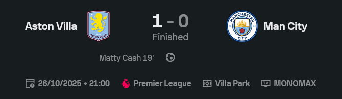 ต้องบอกเลยว่าเกมนี้ แมนเชสเตอร์ ซิตี้ พลาดตรงความไม่เฉียบคมในพื้นที่สุดท้าย แม้ครองบอลและสร้างโอกาสได้มากกว่า แต่แนวรับของ แอสตัน วิลล่า เล่นแบบหัวใจเกินร้อย โดยเฉพาะ Matty Cash ที่นอกจากยิงประตูชัยแล้วยังเล่นเกมรับได้สุดแข็งแกร่ง เป็นเกมที่สะท้อนให้เห็นว่า “เกมรับที่ดี” ก็สามารถล้มทีมใหญ่ได้ สำหรับสาย วิเคราะห์บอล เกมนี้ถือเป็นเคสคลาสสิกของบอลรองที่เล่นมีวินัยและเฉียบคมในจังหวะเดียว