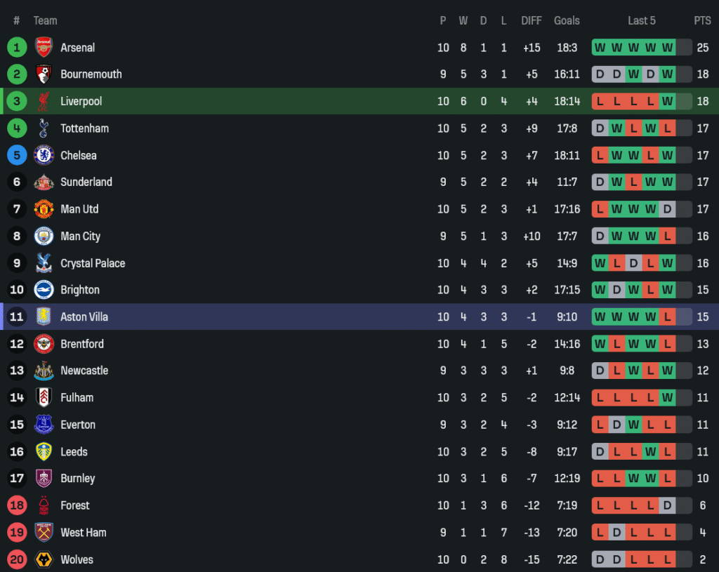 - ยิงทั้งหมด: ลิเวอร์พูล 16 | วิลล่า 10