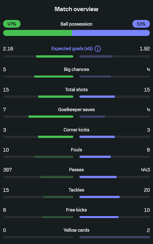 - ค่าคาดหวังประตู (xG) วิลล่า 2.16 vs ปืนใหญ่ 1.92