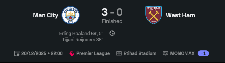 เกม พรีเมียร์ลีก 2025/26 ที่เอติฮัด สเตเดียม แมนเชสเตอร์ ซิตี้ เปิดบ้านอัด เวสต์แฮม ยูไนเต็ด 3-0 ใครเปิดดู ไฮไลท์บอลวันนี้ ย้อนหลังก็รู้เลยว่าเรือใบเล่นเหมือนซ้อมเกมรุกจริงจัง ขึงเกมใส่ตั้งแต่นาทีแรกแบบไม่แคร์แขก สายเช็ก ผลบอลสด เห็นสกอร์ไหลขนาดนี้ก็รู้เลยว่าบอลมันไปทางเดียวชัด ๆ